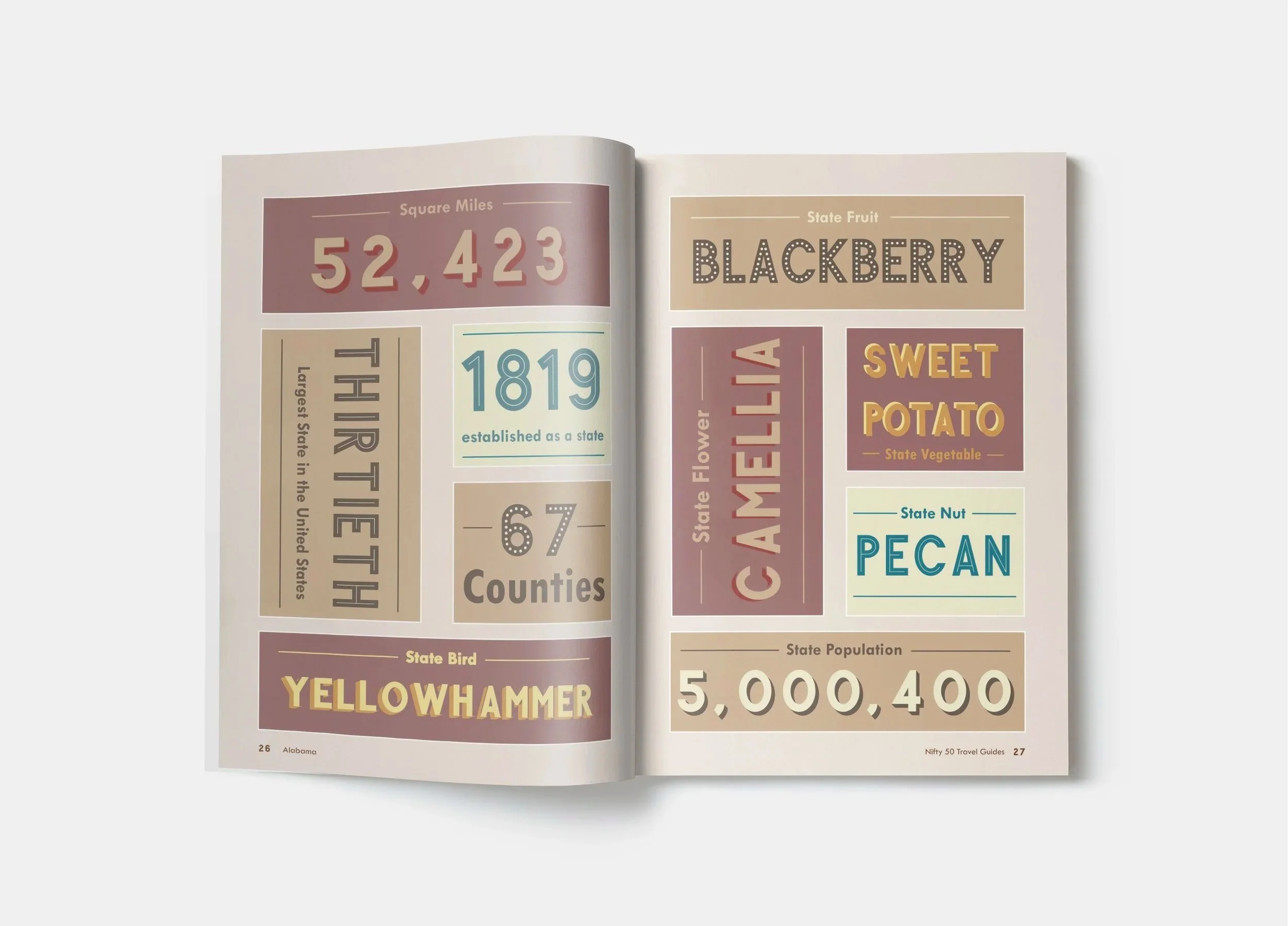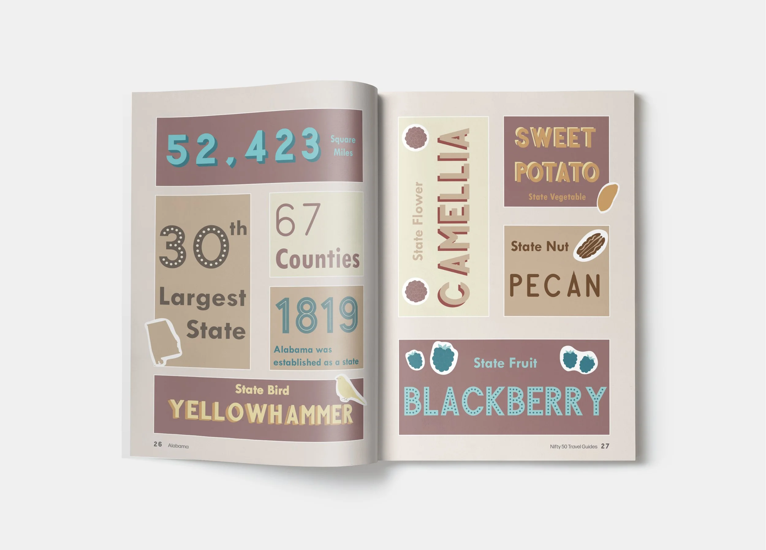 The Nifty Fifty Alabama Travel Guide demonstrates how editorial design can elevate informational content into an engaging and emotionally driven experience. By combining research, storytelling, and expressive design, the project reimagines travel guides as something to explore, not just reference.